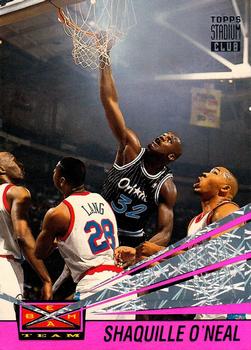 The 1993-94 Stadium Club set consists of 360 standard-size cards issued in two series of 180 cards. Cards were issued in 12 and 20-card packs. There were 24 twelve-card packs per box. The full-bleed fronts feature glossy color action photos. The player's name is superimposed on the lower portion of the picture in white and gold foil lettering. The borderless backs are divided in half vertically with a torn effect. The left side sports a vertical player photo and on the right side, over a purple background, is biography and player's name and team. A brief section named "The Buzz" provides career highlights. A multi-colored box lists the 1992-93 statistics, career statistics and a Topps Skills Rating System that provides a score including player intimidation, mobility, shooting range and defense. Subsets featured are Triple Double (1-11, 101-111) and High Court (61-69, 170-178) and interspersed NBA Draft Picks.