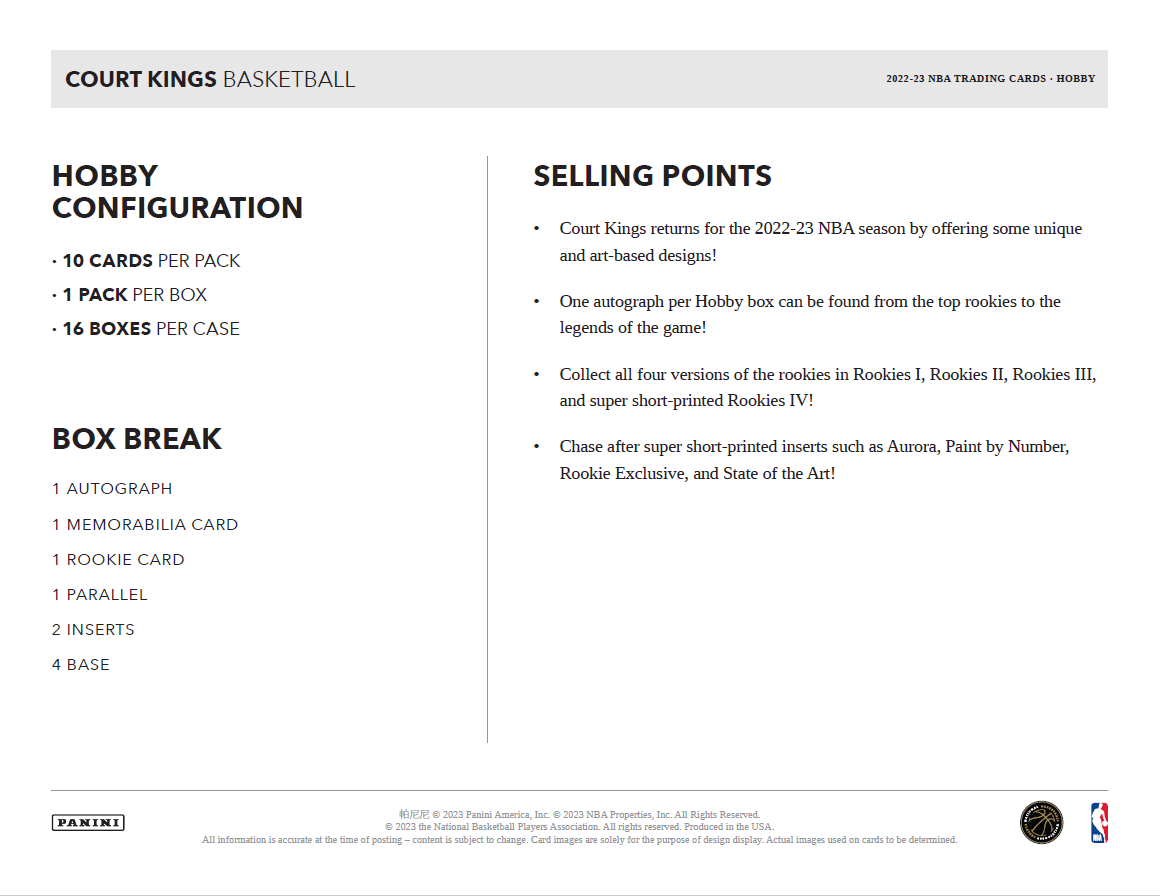 2022-23 Panini Court Kings NBA Basketball Cards PRODUCT HIGHLIGHTS: