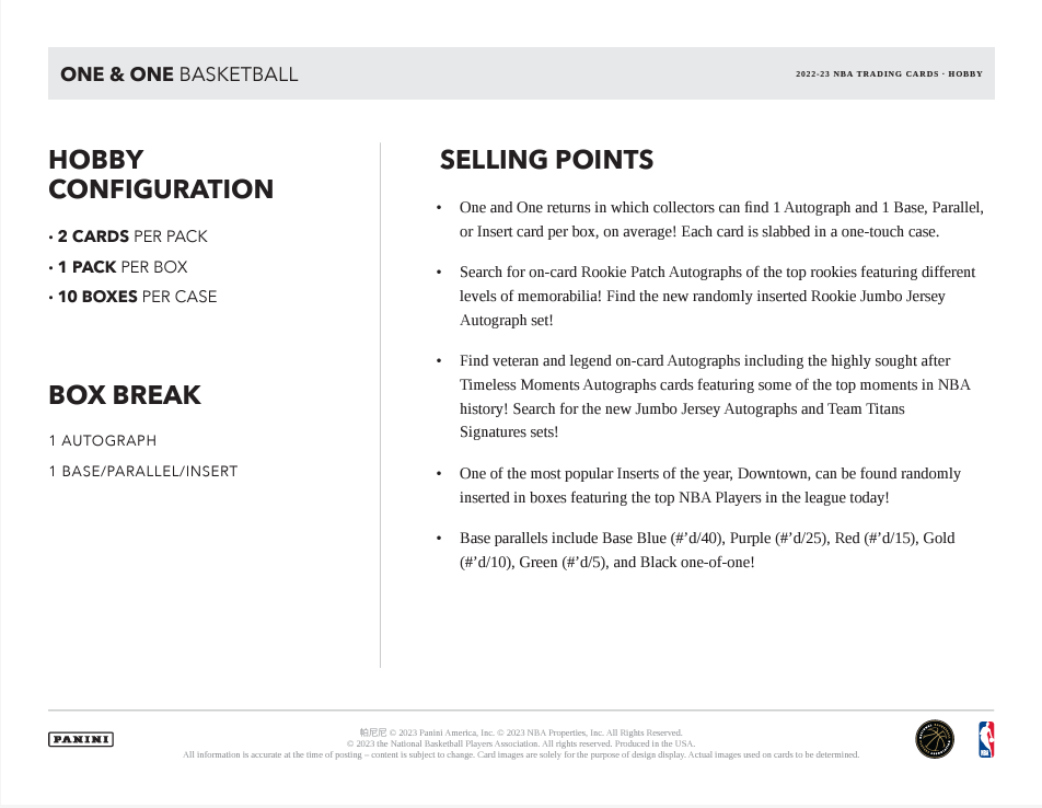 2022-23 Panini One and One NBA Basketball Cards PRODUCT HIGHLIGHTS:
