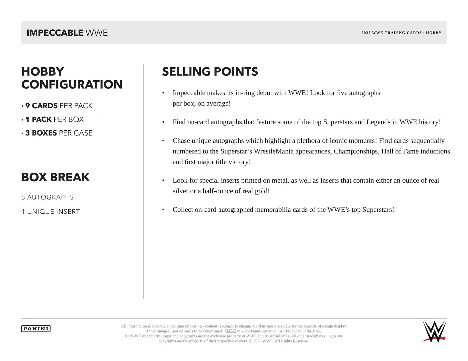 2022 Panini Impeccable WWE Trading Cards PRODUCT HIGHLIGHTS: