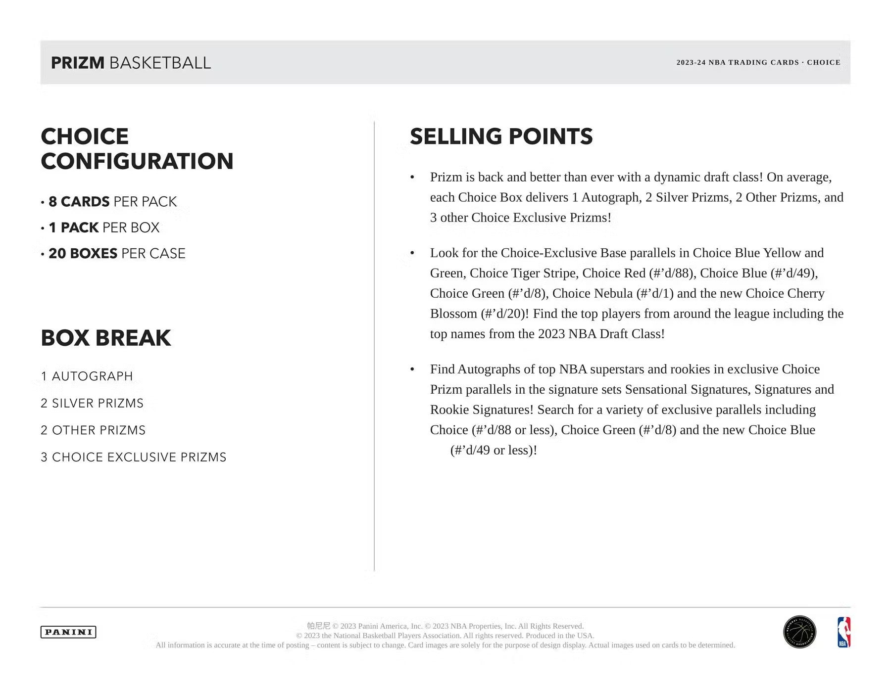 2023-24 Panini Prizm NBA Basketball Choice Cards PRODUCT HIGHLIGHTS: