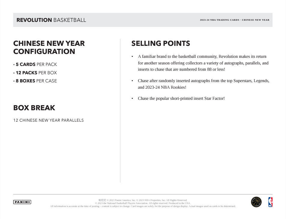 2023-24 Panini Revolution Chinese New Year NBA Basketball Cards PRODUCT HIGHLIGHTS: