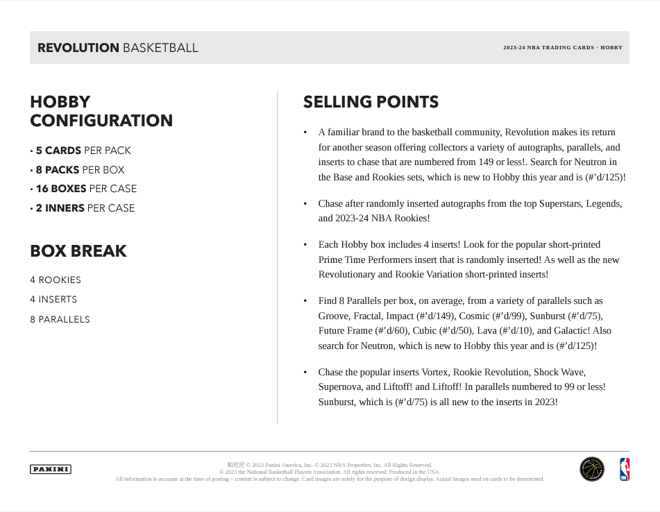 2023-24 Panini Revolution NBA Basketball Cards PRODUCT HIGHLIGHTS: