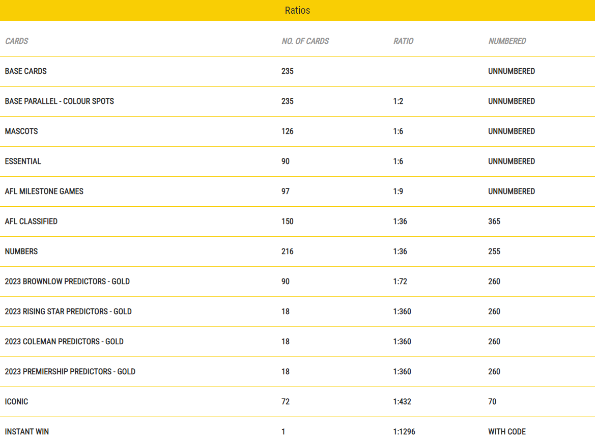 AFL Classified and Numbers return for a second year with AFL Classified now an acetate series and Numbers returns with new players as a metallic gold insert series.