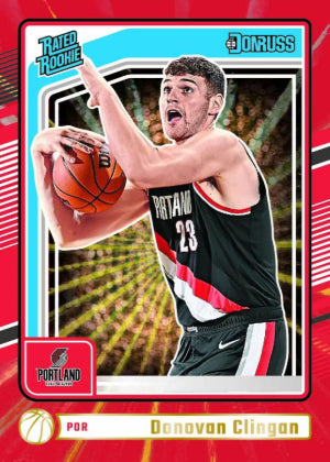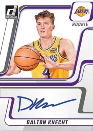 2023-24 Panini Donruss NBA Hobby Boxes contain 1x Autograph and 60x Inserts/Parallels with 30 cards per pack and 10 packs per box. 2023-24 Panini Donruss NBA Retail Boxes contain 24x Inserts/Parallels with 8 cards per pack and 24 packs per box. Autographs are Randomly Inserted. 2023-24 Panini Donruss NBA Blaster Boxes contain 12x Inserts/Parallels with 15 cards per pack and 6 packs per box. Look for Base and Insert Rookie Cards of Zaccharie Risacher, Alex Sarr, Reed Sheppard, Stephon Castle, Jared McCain, Ron Holland II, Tidjane Salaun, Donovan Clingan, Rob Dillingham, Zach Edey, Cody Williams, Matas Buzelis, Bub Carrington, Kel'El Ware, Dalton Knecht, Yves Missi, Jaylen Wells, Johnny Furphy, Kyshawn George, Tristan da Silva and Bronny James!